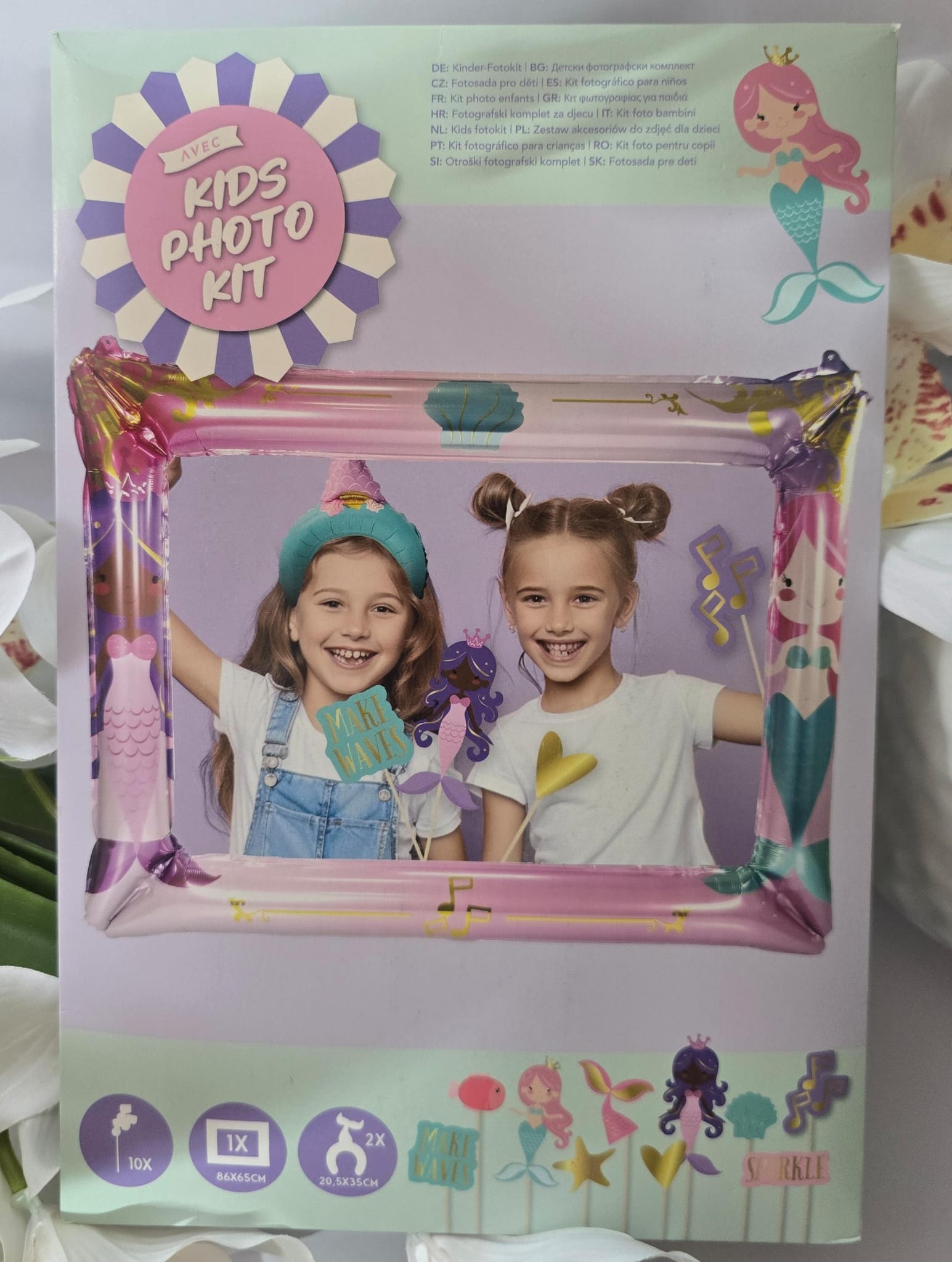 - Conținut: Include o ramă foto gonflabilă, accesorii/recuzită (propsuri) și autocolante.